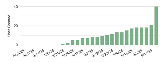 Pages, too, was released on the 25th. Below is a graph of user-created pages (vs. Pages automatically created to house a Parabol meeting summary):