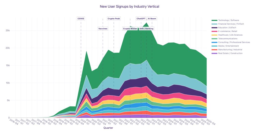 We have an easier time closing and keeping customers in FinTech/Neobanking than any other sector. We’re also seeing this in AI/Machine Learning, DevOps/Developer Tools, and Cybersecurity.