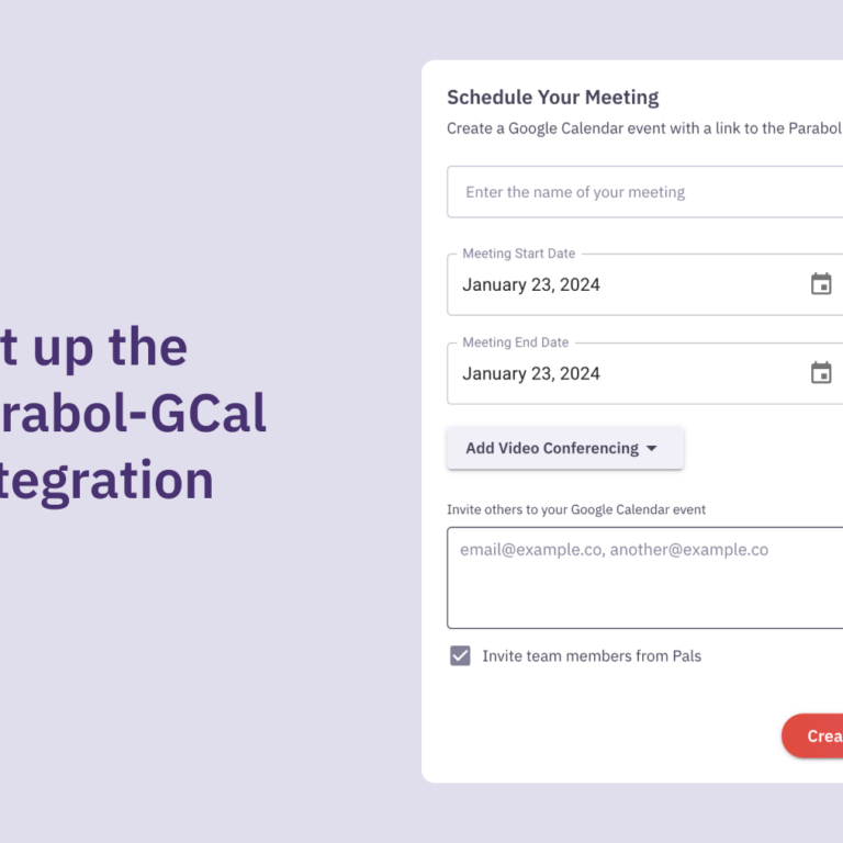 With Parabol’s Google Calendar integration, you can schedule your meeting in advance and have a corresponding meeting invitation sent to your calendar automatically.