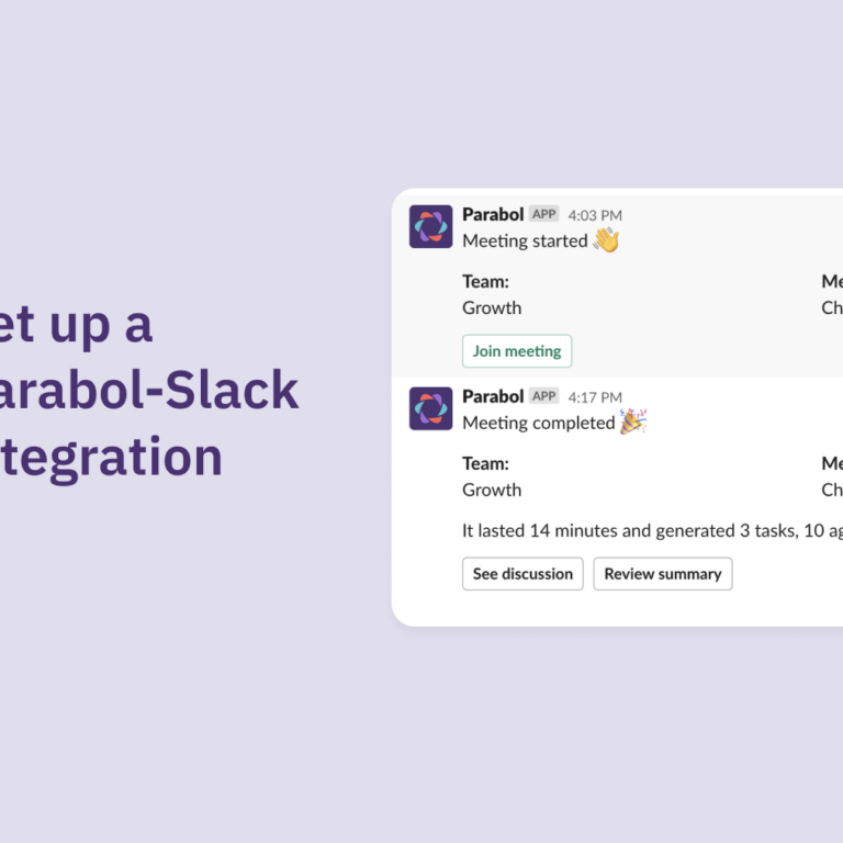 Parabol’s Slack integration allows the meeting facilitator to notify the team that a meeting has started by sending a notification in Slack