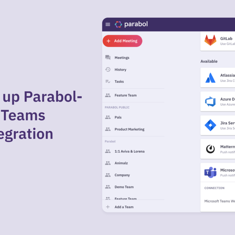 Parabol’s Microsoft Teams integration allows the meeting facilitator to notify the team that a meeting has started by sending a notification in Microsoft Teams